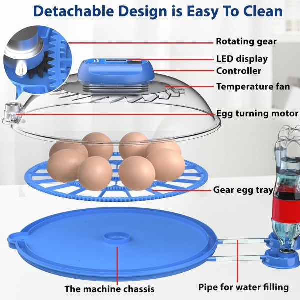 • Hatching Capacity: 18 Chicken Eggs