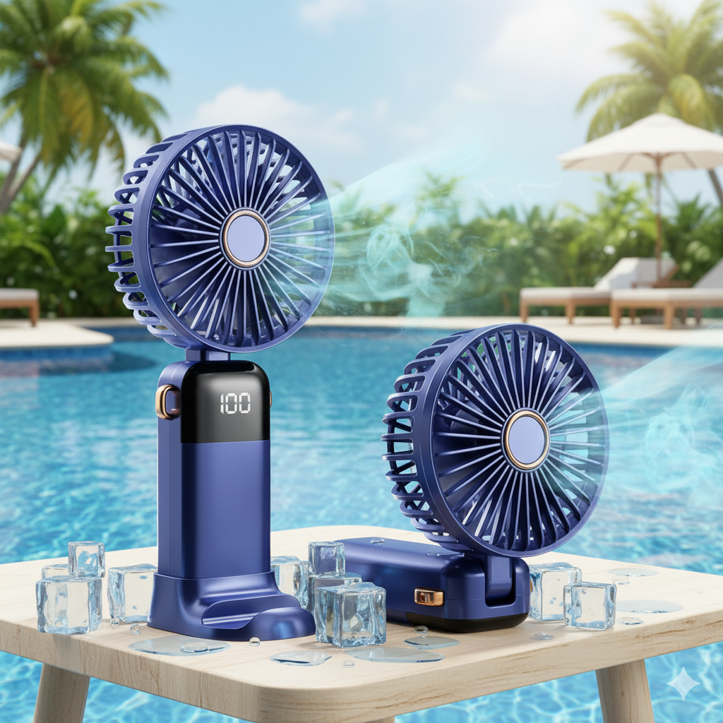 ARMICO Mini Handheld Fan – 4-in-1 Rechargeable USB Fan with LED Display
