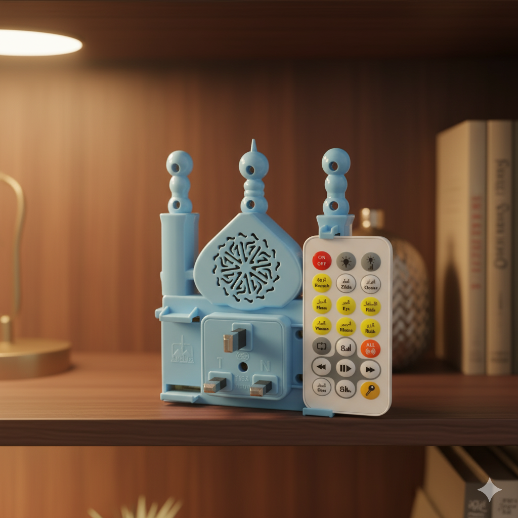 This Quran V2 is an updated version of the Plug-in Quran that can be heard by plugging it into an electrical socket.